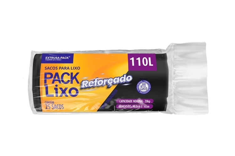 SACO DE LIXO REFORÇADO 110 LITROS PRETO (90X105 CM) - FARDO COM 6 ROLOS (25 UND POR ROLO)